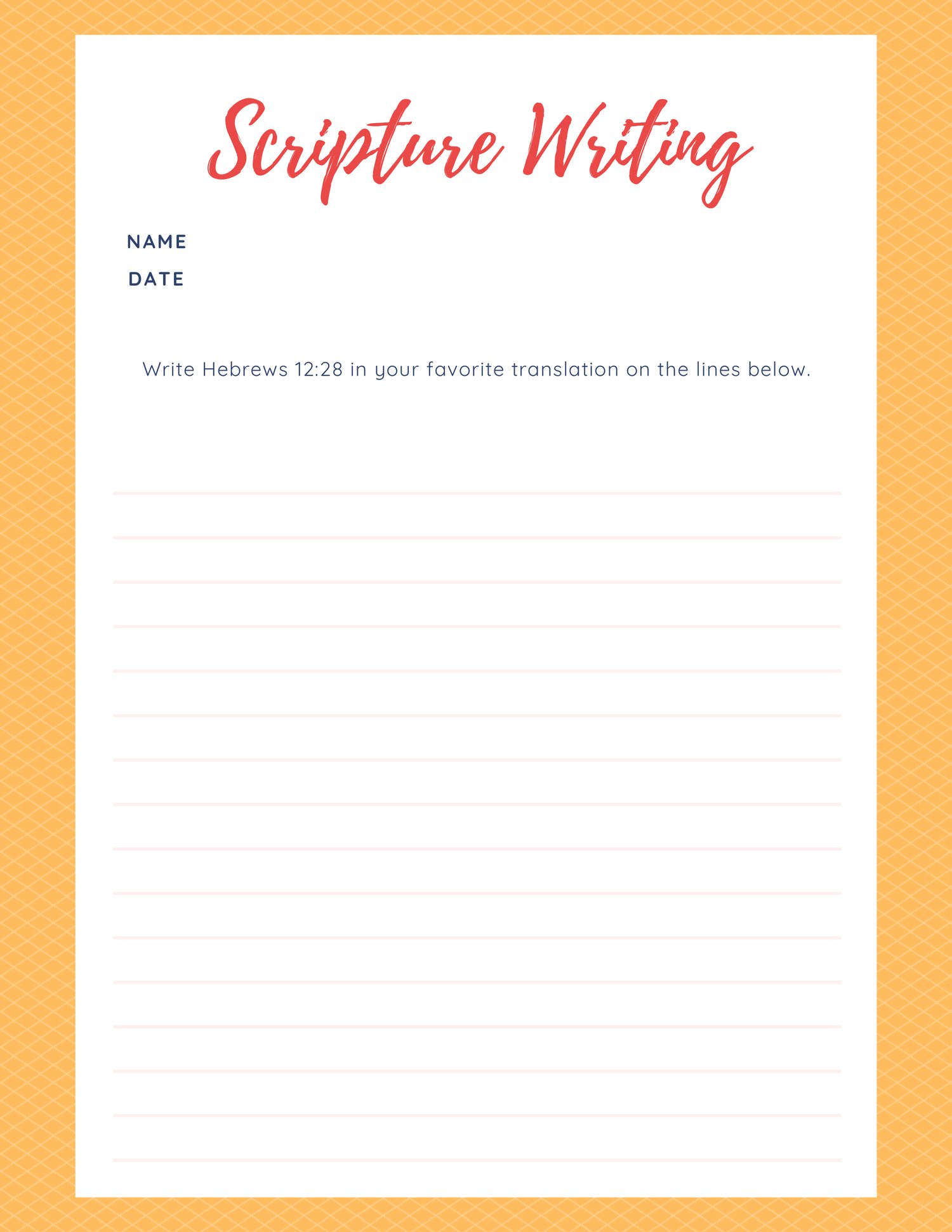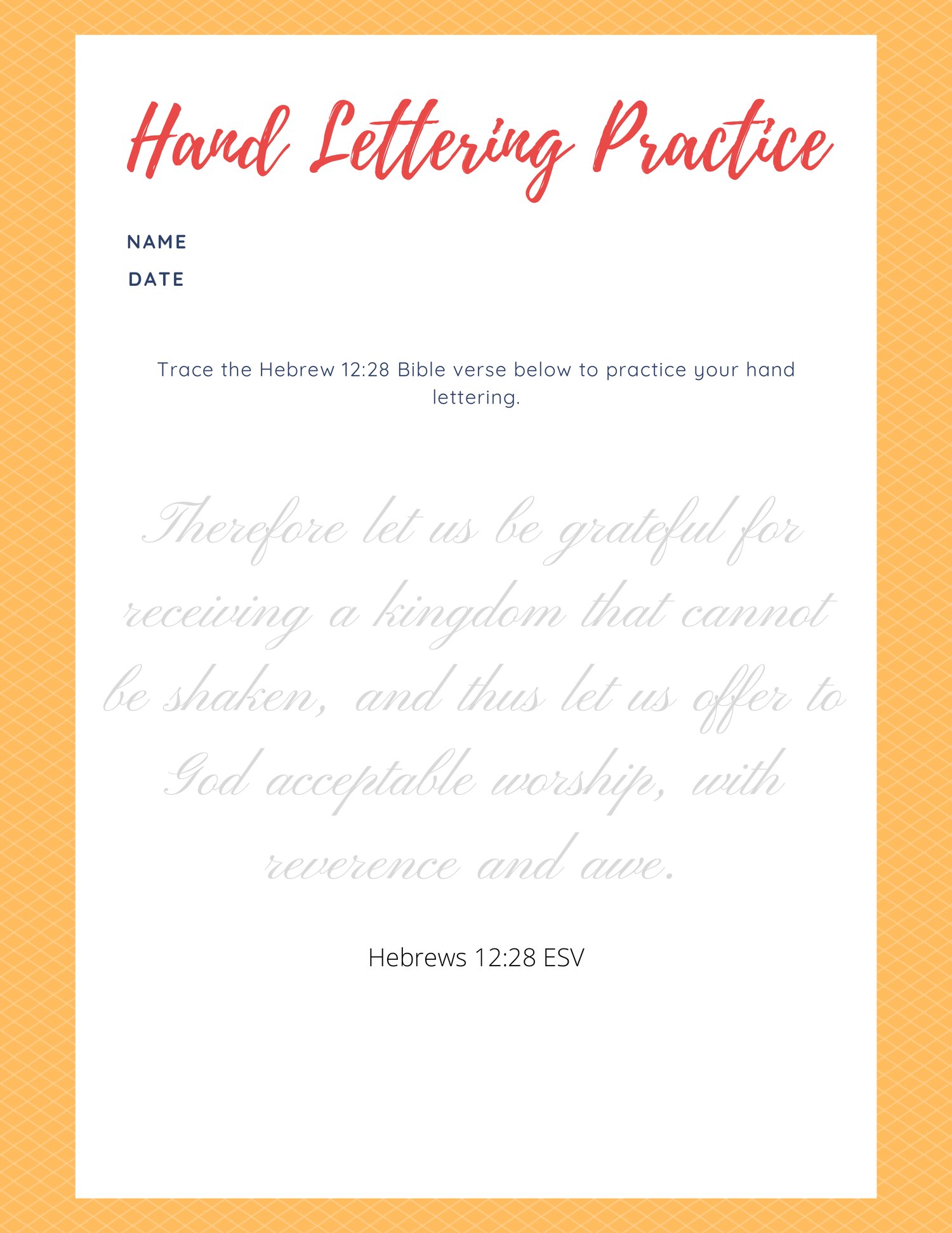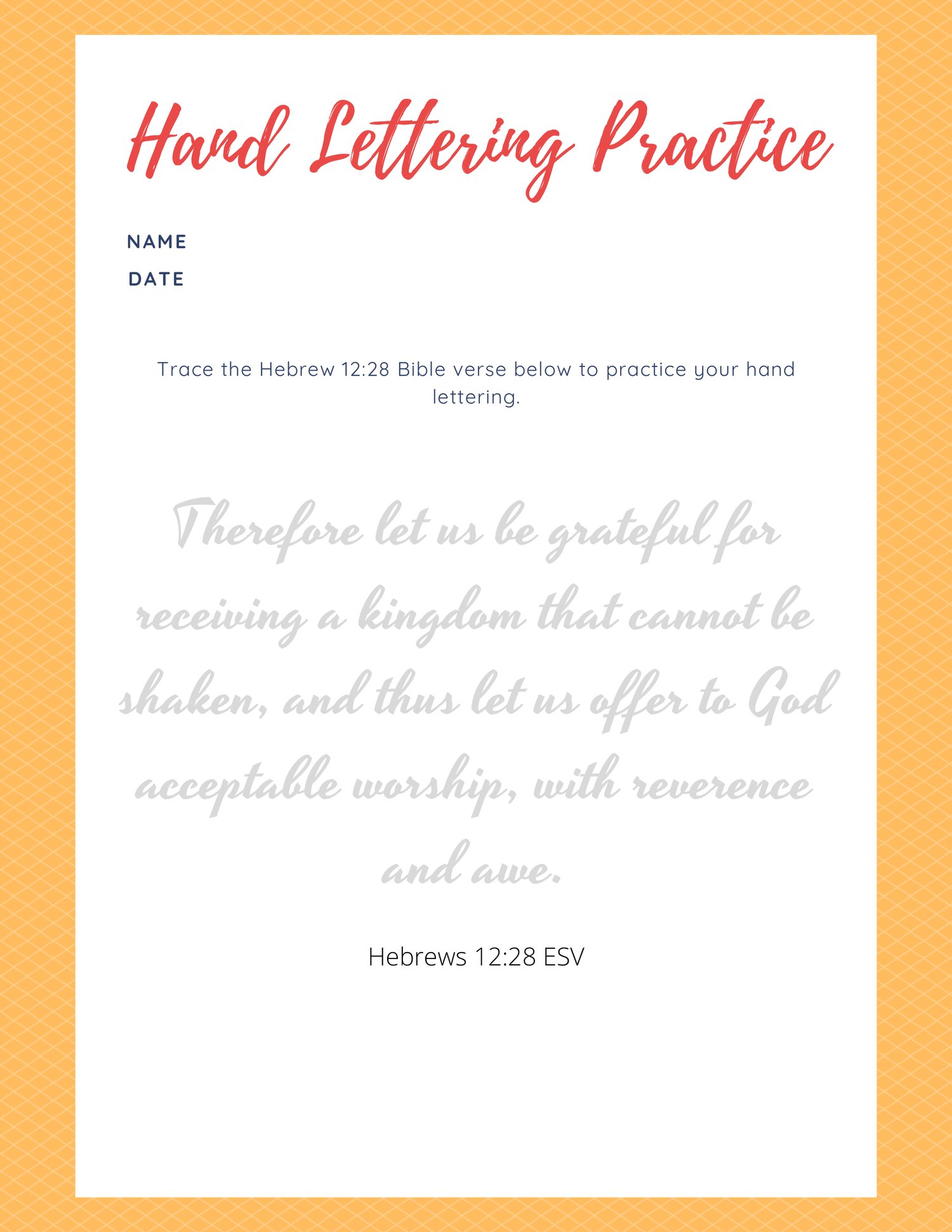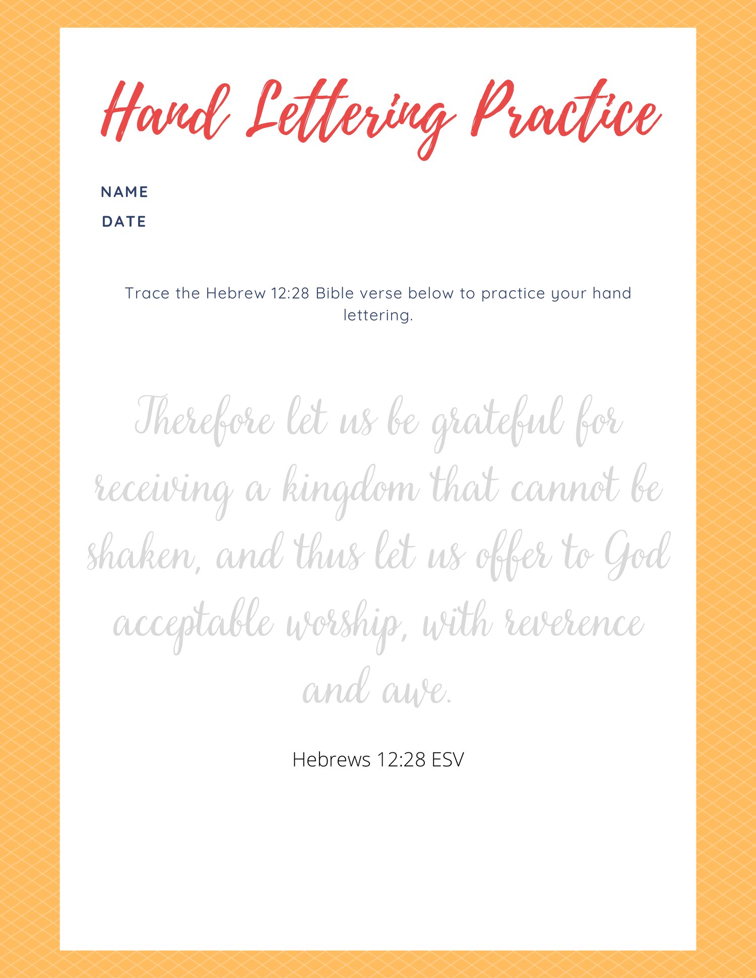 Hebrews 12:28 Scripture Writing Printables - Personal and Educational Use